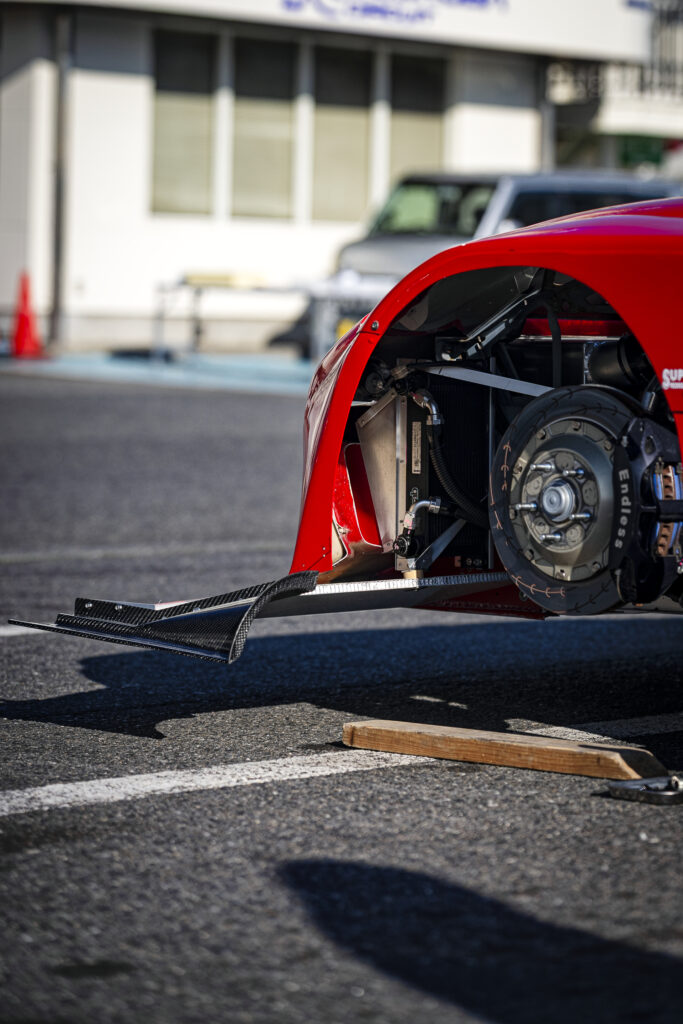 左右に大きく立ち上がるスイープ形状とガーニー効果により、フロントセクションのダウンフォースを向上。アンダーパネルの効果を最大限に引き出します。